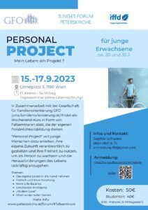 Wir organisieren in Zusammenarbeit mit der Gesellschaft für Familienorientierung (GFO – https://cms.familienorientierung.at/ – Partner der IFFD in Österreich) Seminare, die der Persönlichkeitsbildung von jungen Leuten dienen.