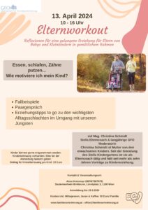 Da sollen v.a. Themen wie Identität als Mann/Frau und Mutter/Vater; Work-Family-Balance; Kern- und Großfamilie; Geld und Werte zur Sprache kommen, aber auch eine gute Gelegenheit zu Austausch über alle offenen Fragen geboten werden.